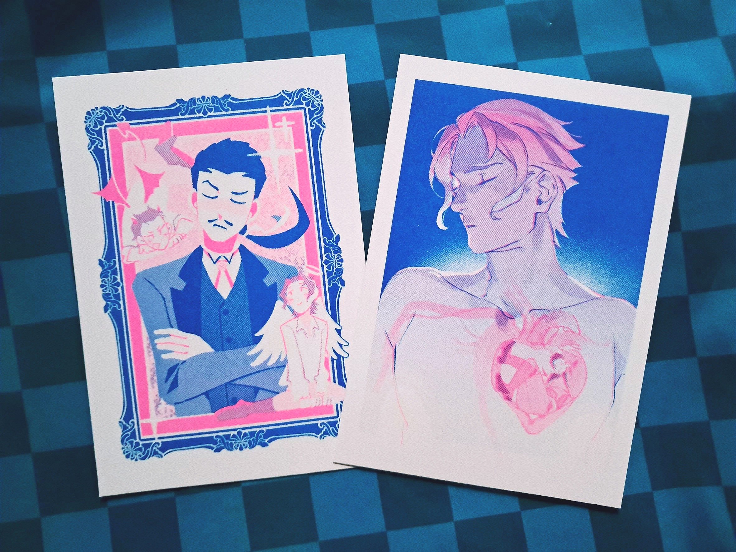 i drew an entire 21p comic for the genbaro anthology as well. it was so cringe that i can't read it BUT it gave me the opportunity to create a risoprint for the first time— which i'm still so happy with!