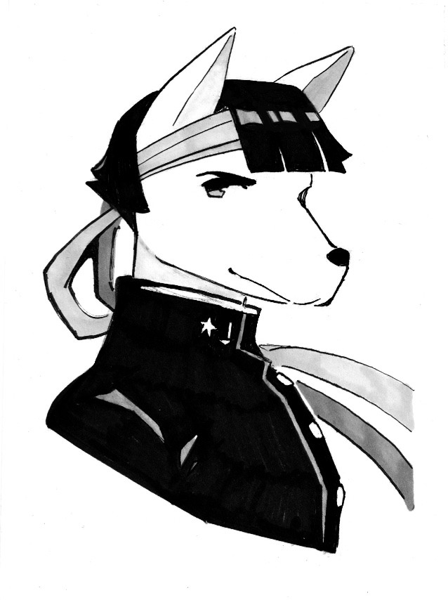here are my giveaway drawings as well. there's a third one (jezaille brett) but i left the scan on my old computer. of course, there's also the promo artwork i drew... when i look at all of these asogi dog drawings now, i have no clue what i'm doing with his hair. i also made ryunosuke and barok papercrafts! read my post about designing them!!!