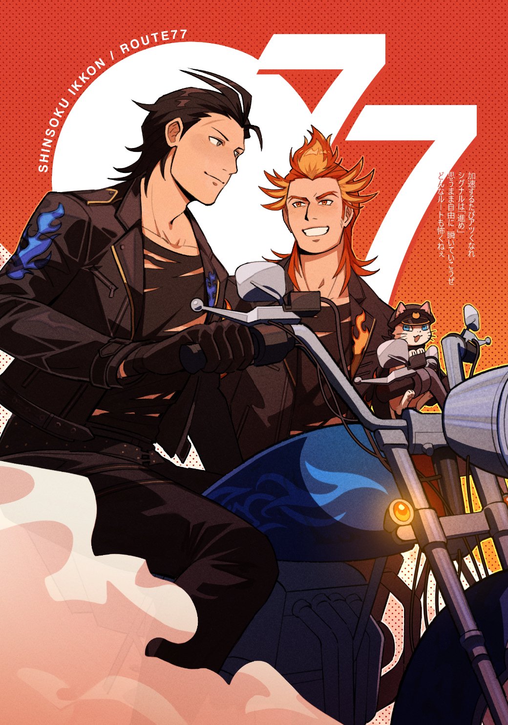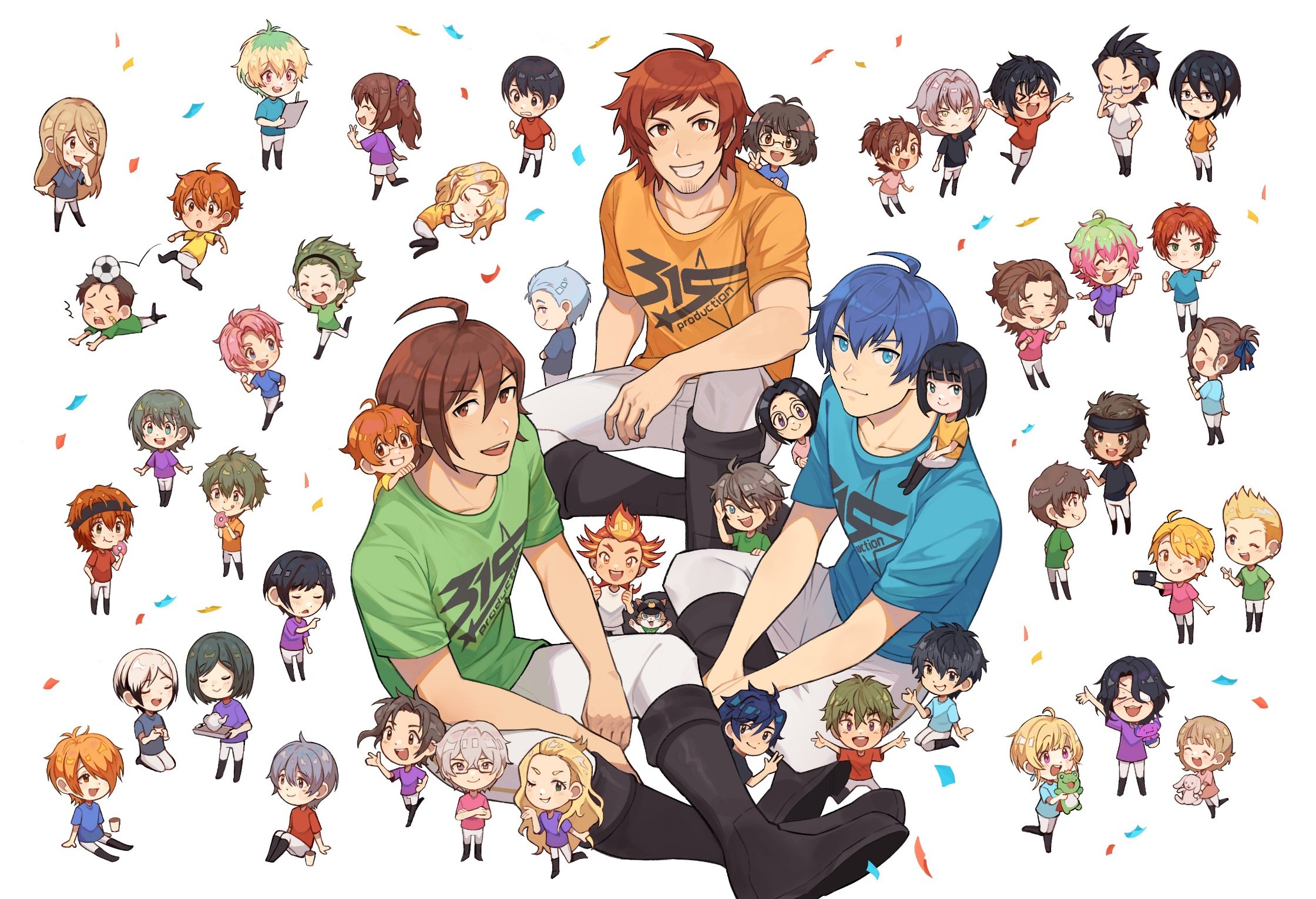 the cover was a collaboration with izzy. i drew the main trio and colored the leader chibis and some other chibis, but we both did a lot of clean-up work on each other's art LOL. i CTFU cuz i got touma's face right on the first try but we had to redraw shu and teru like 20 times.