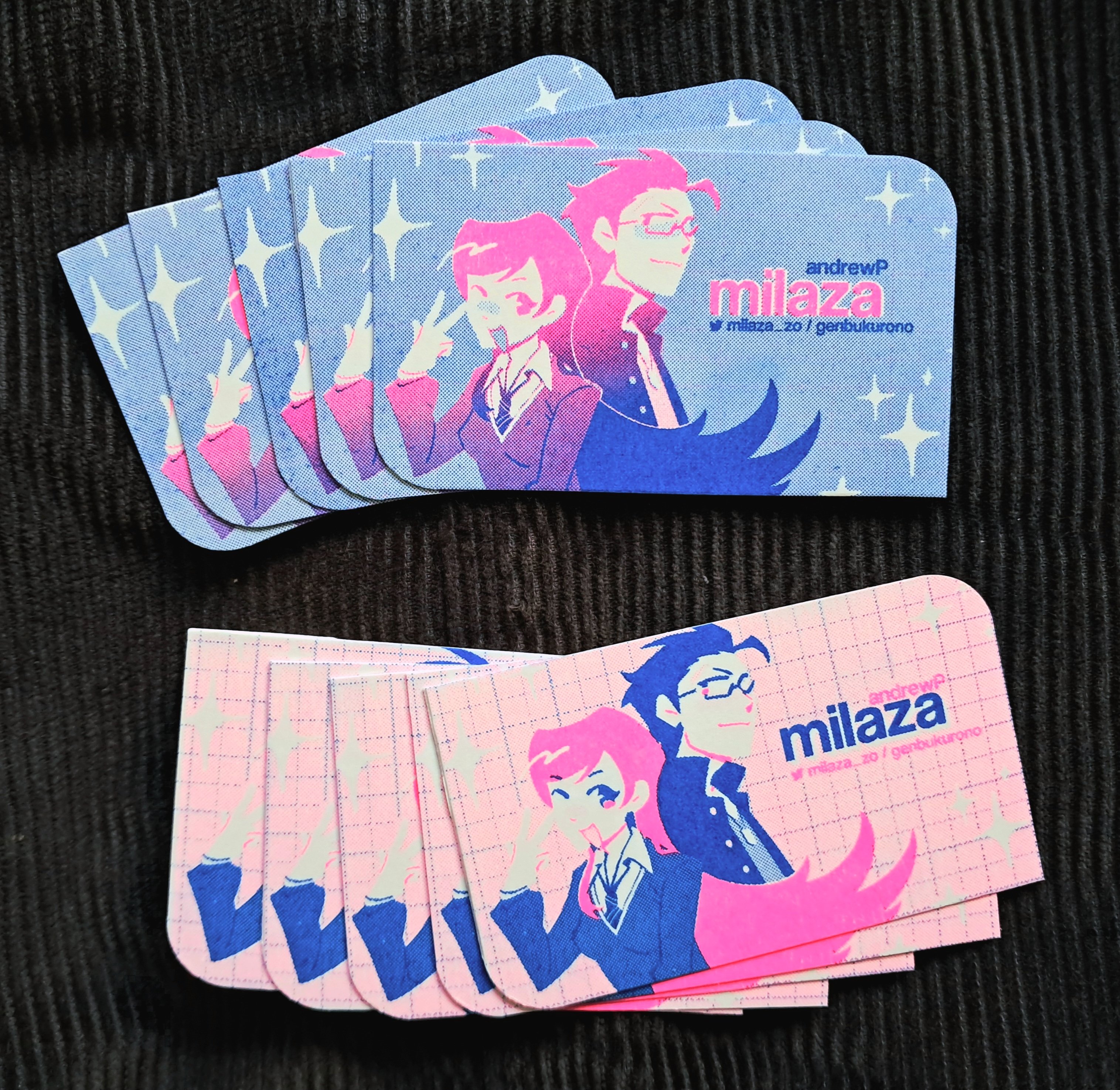 got some new pcards risoprinted for 9th. there's two per A4 sheet (rest of the page is used for other A6 prints), so i made different variations. i love how cute it looks!