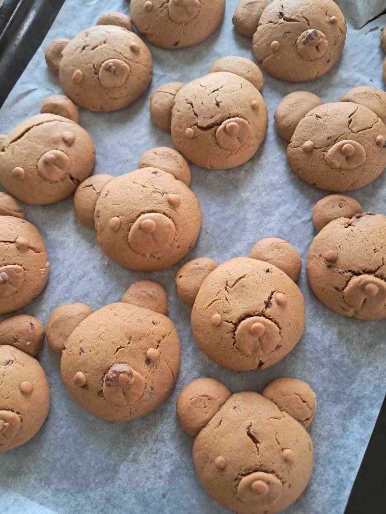 i baked some bear-shaped cookies. when my baby niece saw a picture, she got so obsessed with them that she lost appetite to eat until i gave one to her after lunch.